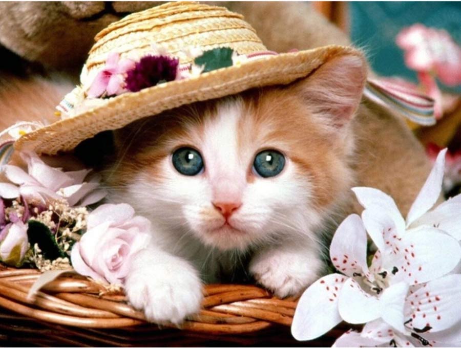 Diamentowa Mozaika Haft Diamentowy Kot W Kapeluszu 30X40 Cm Kreatywne Diamenty