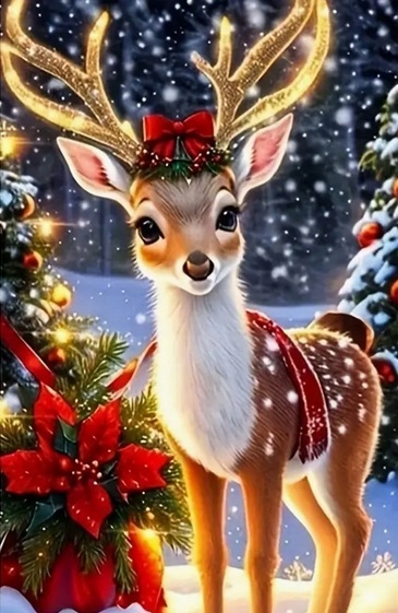 Diamentowa Mozaika Haft Diamentowy Świąteczny Renifer Z Kokardą 30X40