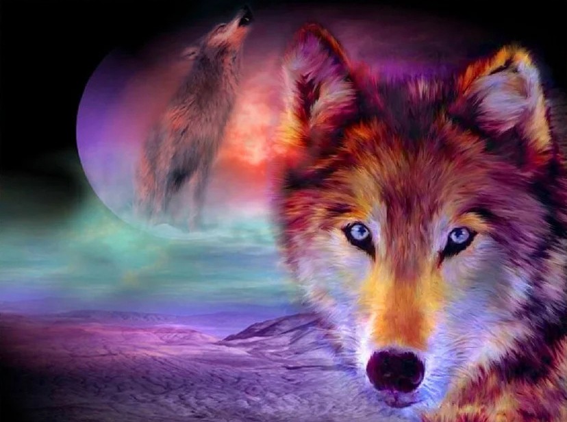 Diamentowa Mozaika Haft Diamentowy Wilk Pełnia 30X40 Cm Kreatywne Diamenty
