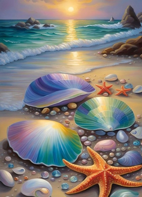 Diamentowa Mozaika Haft Kolorowe Muszle Z Rozgwiazdą Na Plaży 30x40 Cm