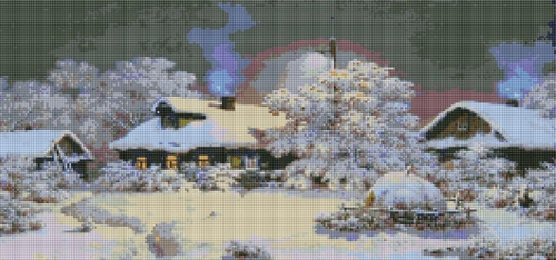 Diamentowa Mozaika Klimatyczny Zimowy Wieczór W Wiosce 80x40 Cm