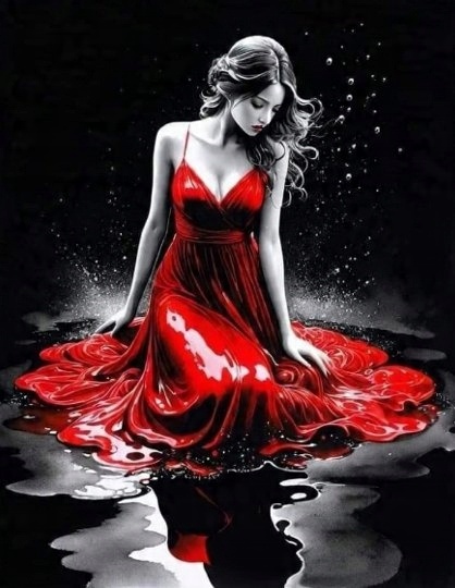Diamentowa Mozaika Kobieta W Czerwonej Sukience 30x40 Cm Kreatywne Diamenty