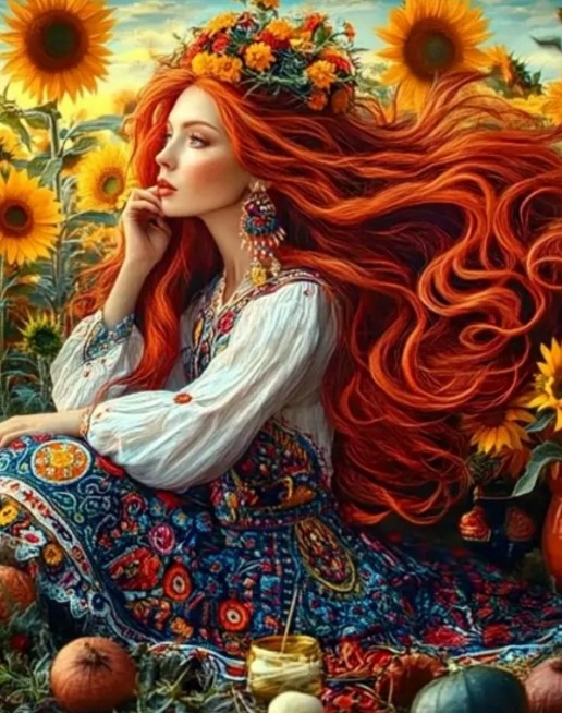 Diamentowa Mozaika Kobieta W Polu Rudowłosa 30x40 Cm Kreatywne Diamenty
