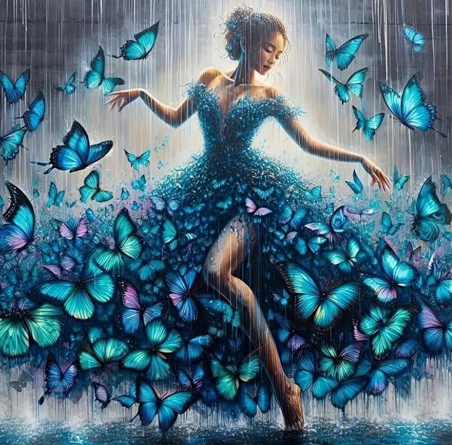 Diamentowa Mozaika Kobieta W Sukni Z Motyli 30x40Cm Kreatywne Diamenty