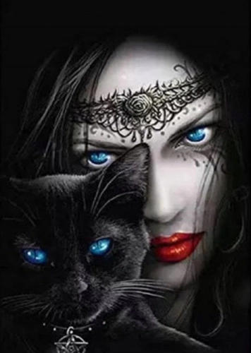 Diamentowa Mozaika Kobieta Z Kotem W Czerni 30x40