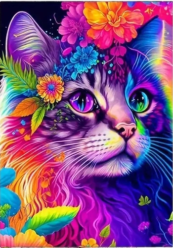 Diamentowa Mozaika Kolorowy Kot Kwiecisty 30X40 Cm Kreatywne Diamenty