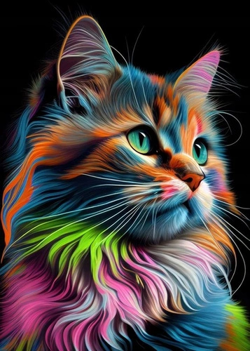 Diamentowa Mozaika Kolorowy Kot na Czarnym Tle 30X40 Cm Kreatywne Diamenty