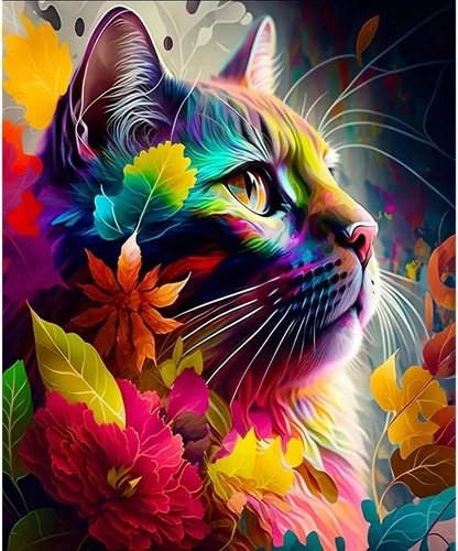 Diamentowa Mozaika Kolorowy Kot W Liściach 30X40 Cm Kreatywne Diamenty