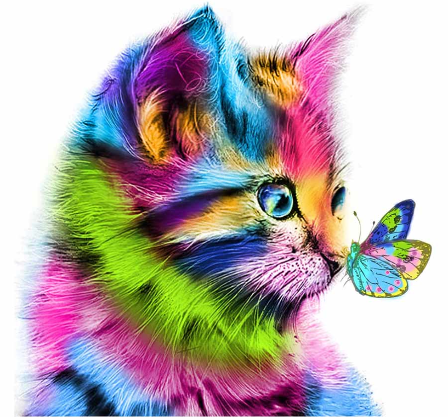 Diamentowa Mozaika Kolorowy Kot Z Motylem Na Nosie 30X40 Cm Kreatywne