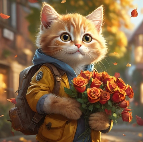 DIAMENTOWA MOZAIKA KOT-CHŁOPCZYK Z BUKIETEM PAK 30 30X40