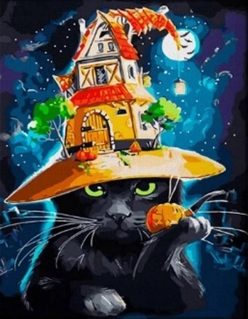 Diamentowa Mozaika Kot W Kapeluszu Halloween Haft Kreatywny 30x40 Cm