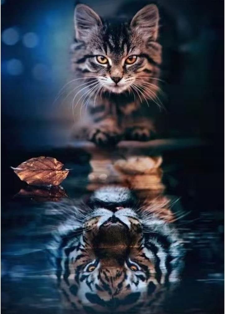 Diamentowa Mozaika Kot Z Odbiciem Tygrysa Haft Kreatywny 30x40 Cm