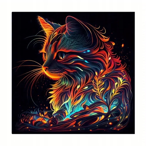 Diamentowa Mozaika Kot Z Roślinami Haft Kreatywny 30x40 Cm