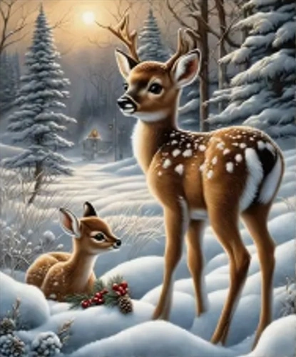 DIAMENTOWA MOZAIKA KOT ZIMA SARENKI NA ŚNIEGU PAK 60 30X40