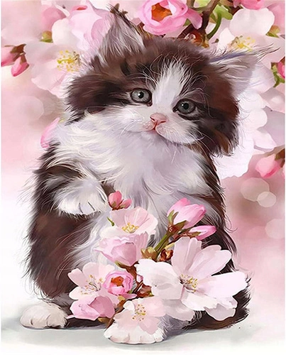 Diamentowa Mozaika Kotek W Kwiatach 30x40 Cm