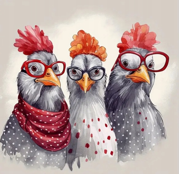 Diamentowa Mozaika Kury Trzy W Okularach 30x40 Cm Kreatywne Diamenty
