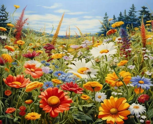 Diamentowa Mozaika Kwietna Łąka Kwiaty 30x40Cm Kreatywne Diamenty