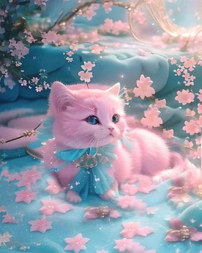 Diamentowa Mozaika Leżący Różowy Kot Z Kokardą 30X40 Cm Kreatywne Diamenty