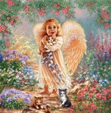 Diamentowa Mozaika Mały Aniołek Z Grupką Kotów 30x40Cm Kreatywne Diamenty