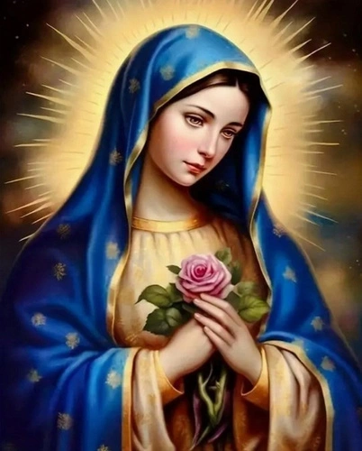 Diamentowa Mozaika Maryja Z Różą 30X40 Cm Kreatywne Diamenty