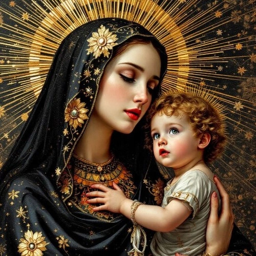 Diamentowa Mozaika Matka Boska Z Dzieciątkiem Złote Promienie 30x40Cm