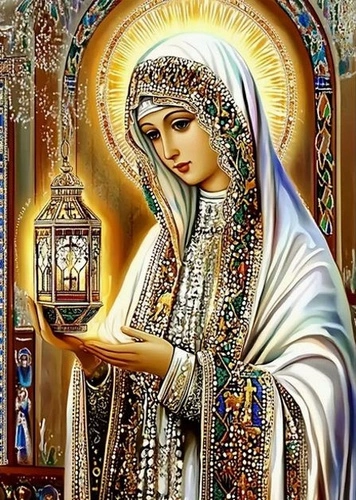 Diamentowa Mozaika Matka Boska Z Lampionem 30X40 Cm Kreatywne Diamenty