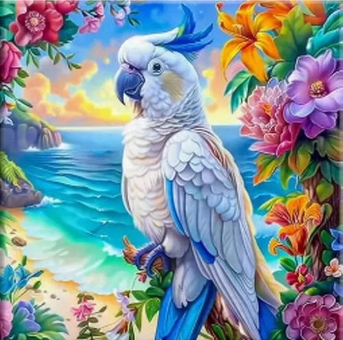 Diamentowa Mozaika Papuga Na Rajskim Wybrzeżu 30x40Cm Kreatywne Diamenty