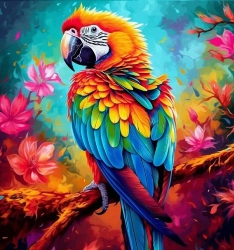 Diamentowa Mozaika Papuga Na Tle Kwiatów Haft Kreatywny 30x40 Cm