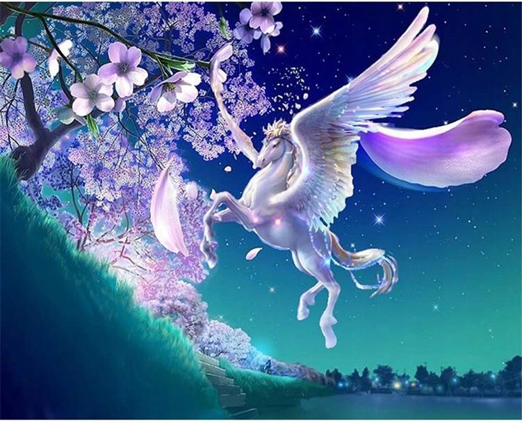 Diamentowa Mozaika Pegaz Nad Zielonym Wzgórzem 30X40 Cm Kreatywne Diamenty