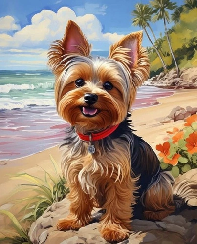 Diamentowa Mozaika Pies York Na Plaży 30x40 Cm Kreatywne Diamenty