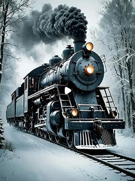Diamentowa Mozaika Pociąg Ekspres Zimowy 30x40 Cm Kreatywne Diamenty