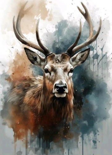 Diamentowa Mozaika Portret Jelenia Na Tle Farb 30x40Cm Kreatywne Diamenty