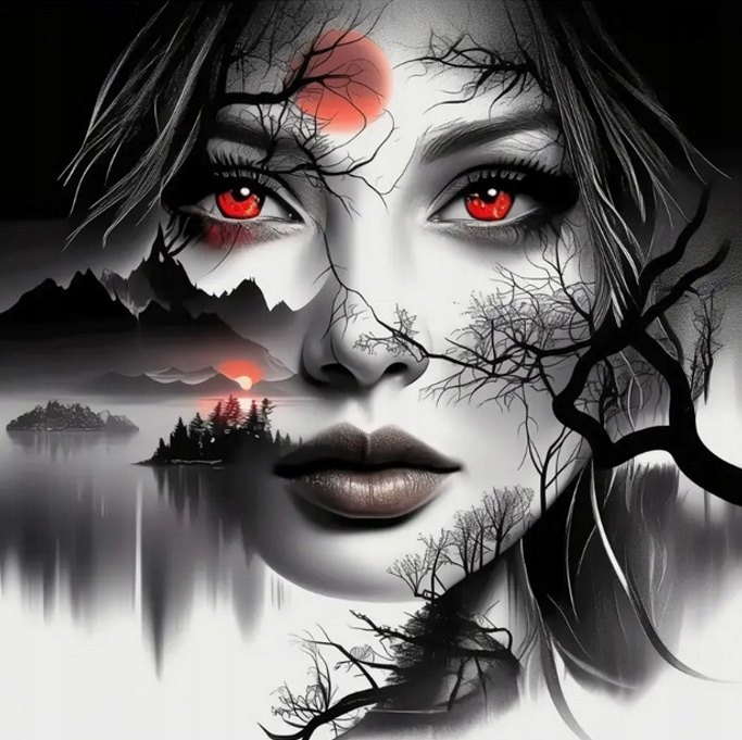 Diamentowa Mozaika Portret Kobiety Z Czerwonymi Oczami 30x40Cm Kreatywne