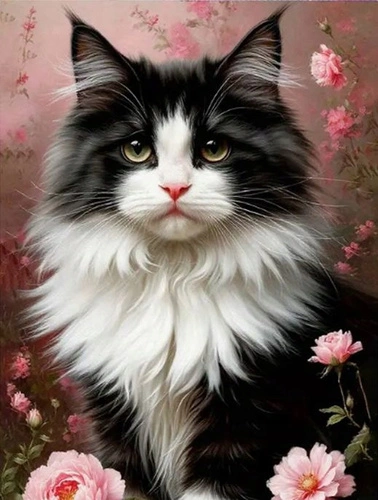 Diamentowa Mozaika Portret Kota Czarno-Białego 30x40 Cm Kreatywne Diamenty