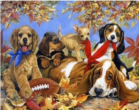 Diamentowa Mozaika Psy Bawiące Się Piłką Jesień Liście 80x40 Cm