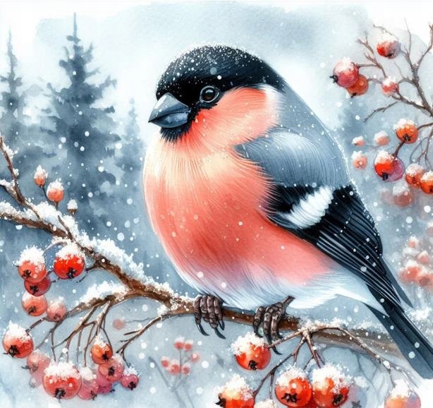 Diamentowa Mozaika Ptak Gil Na Gałęzi Zimą 30x40Cm Kreatywne Diamenty