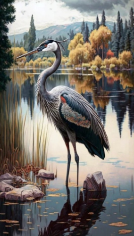 Diamentowa Mozaika Ptak Piękny Żuraw W Stawie 30x40Cm Kreatywne Diamenty