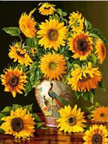 Diamentowa Mozaika Słoneczniki W Chińskim Wazonie Haft Kreatywny 30x40 Cm