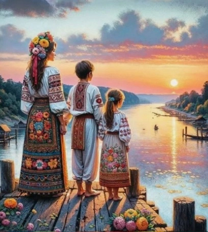Diamentowa Mozaika Słowiańska Rodzina Na Pomoście 30x40Cm Kreatywne Diament