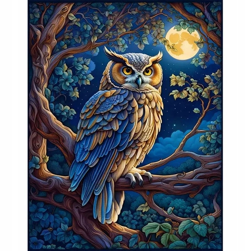 Diamentowa Mozaika Sowa Na Drzewie W Nocy Haft Kreatywny 30x40 Cm