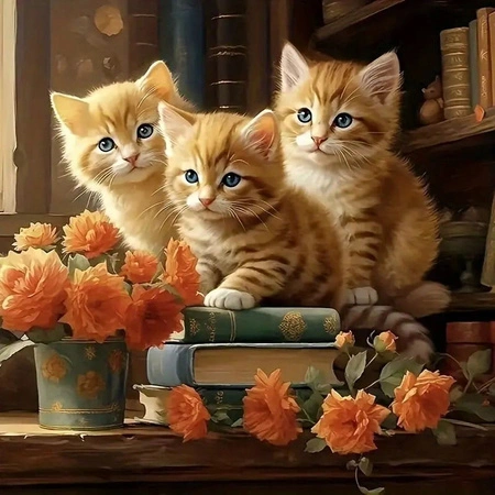 Diamentowa Mozaika Trzy Rude Koty Haft Kreatywny 30x40 Cm