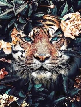 Diamentowa Mozaika Tygrys W Liściach 30X40 Cm Kreatywne Diamenty