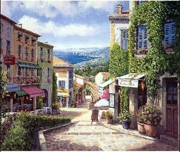 Diamentowa Mozaika Uliczka Z Widokiem Na Wodę 30x40Cm Kreatywne Diamenty