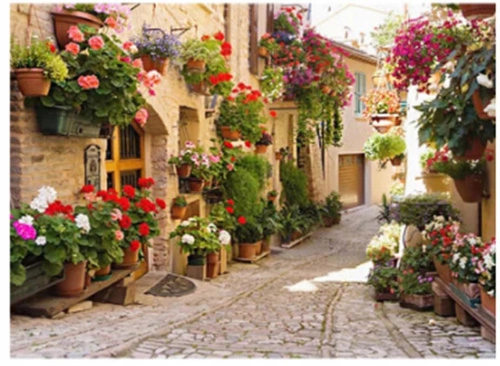 Diamentowa Mozaika Włoska Uliczka Z Kwiatami 30x40Cm Kreatywne Diamenty