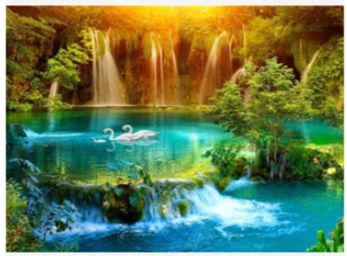 Diamentowa Mozaika Wodospad W Dolinie 30x40 Cm Kreatywne Diamenty