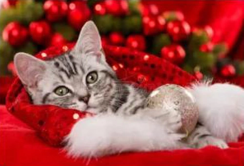 DIAMENTOWA MOZAIKA ZIMA KOT LEŻĄCY W CZAPCE MIKOŁAJA PAK 30