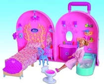 DOMEK DLA LALEK Z ŁAZIENKĄ WALIZKA RÓŻOWA KARTON /12 29,5 CM Waga 1,75 kg