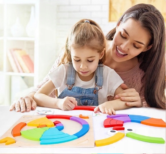 Drewniana Układanka Dla Dzieci Rozwijająca Puzzle Tęczowe Koliste