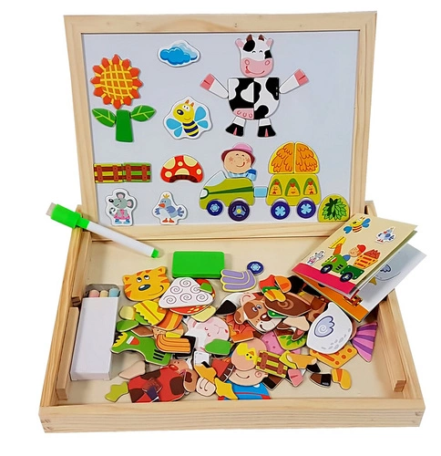Drewniana Zabawka Z Tablicą Magnetyczną Z Magnesami W Kształcie Zwierzątek