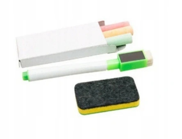 Zawartość zestawu: tablica dwustronna, magnesy z motywem farmy, pisak z gąbką, kreda